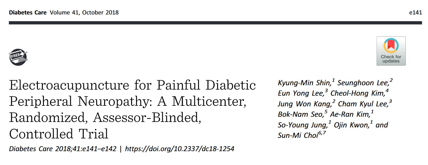 최근 멕시코에서 당뇨병성 말초신경병증에 대한 전침치료효과가 보고되었는데요,