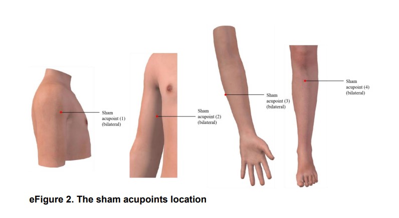 경락위에 있지 않은 8개의 가짜 경혈을 얕게 자침하였고, 득기를 유발시키지 않았습니다.