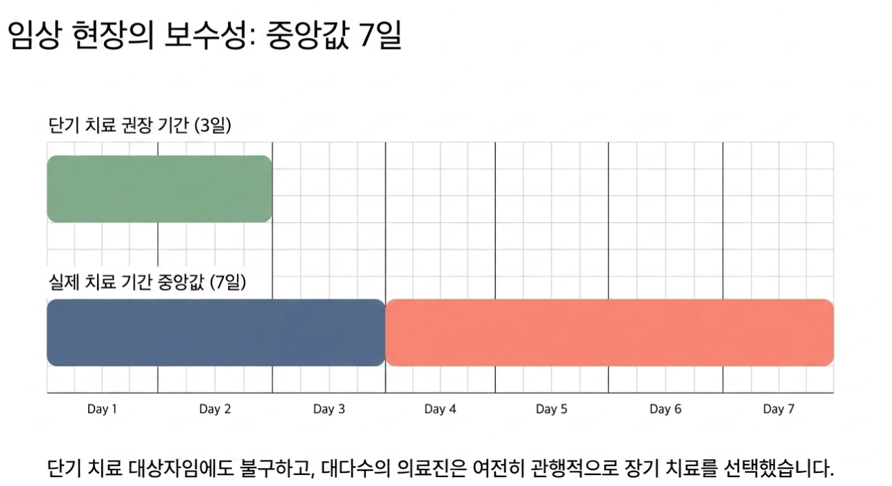 단기 치료 대상자임에도 불구하고 대다수의 환자들이 장기적으로 치료받았음을 보여줍니다.
