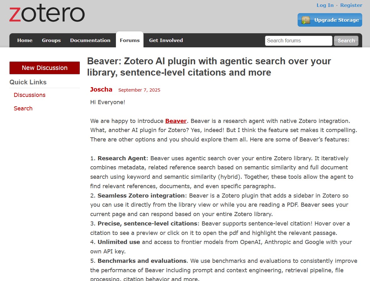 Beaver: Zotero AI plugin with agentic search over your library, sentence-level citations and more